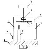 | 1、制備室 2、可升降基座 3、蠟燭 4、電動(dòng)機(jī) 5、吸 附板 6、碳黑收集槽 7、刮刀 8、噴水器 9、透氣孔 | |||||