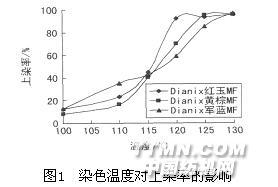 從圖1可以看出,隨著染色溫度的提高,染料上染率提高。染色溫度