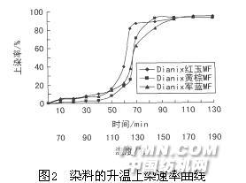 測定選用的三種染料的升溫上染速率曲線,