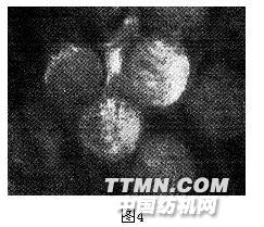 圖4為Dianix黃棕MF染色纖維截面圖,可以看出其透染性較好,無環(huán)染和白芯現(xiàn)象。