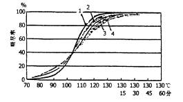 | 圖3 常規(guī)滌綸及其微纖維按1/1標(biāo)準(zhǔn)染色 深度時Foron藍(lán)RD-GLF的吸盡狀況 曲線:1為2.3分特(染料1.66%);2為0.65分特(染料1.76%);3為0.48分特(染料2.25%);4為0.56分特(染料2.54%)。 | 圖4 常規(guī)滌綸及其微纖維按1/1標(biāo)準(zhǔn)染色深度時Forom紅RD-GL的吸盡狀況 曲線:1為0.65分特;2為2.3分特(虛線為請水洗;實線為后凈洗。) |