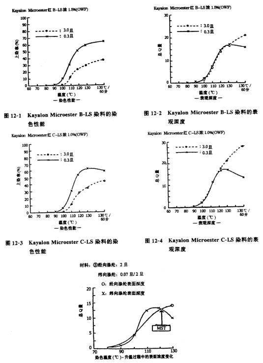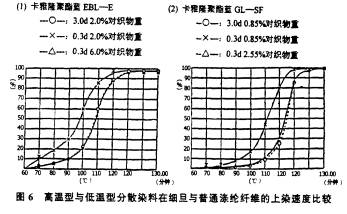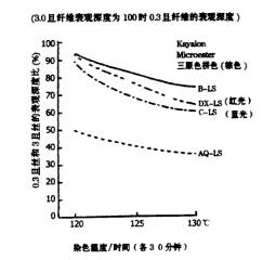 如0.3d與3.0d滌綸共存時染色。在低溫時較多的染料首先染著在0.3d滌綸纖維上,隨著染色溫度升高,其上染率差異會逐步變小。這種趨勢與染料類別有關(guān)。在