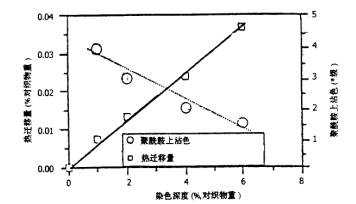 熱遷移率(%)=(纖維表面上的染料量/纖維內(nèi)部染著的染料量)×100%