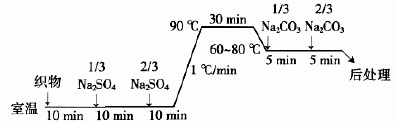 后處理:水洗后在3g/L皂液中(浴比1∶50,95℃)皂煮5min,水洗后晾干.1.4測試樣品表面色深(K/S)值、色光(L*、a*、b*、C*)采用測色儀測量,10°視野,D65光源,試樣折疊4層;上染率E=[(A0-At)/A0]×100%,其中A0為染色前染液吸光度,At為染色后殘液吸光度;固著率F=[(K/S)1/(K/S)0]×100%,其中:F表示和纖維鍵合的染料占上染到纖維上染料總量的百分?jǐn)?shù),(K/S)0、(K/S)1分別為皂煮前后織物的表面色深;總固著率T=E×F×100%,表示與纖維鍵合的染料占投入染浴中染料總量的百分?jǐn)?shù);耐摩擦色牢度按GB/T3920-97測試;耐洗色牢度按GB/T3921-97(方法一)測試;勻染性:在測色儀上對染色樣品均勻取樣,在各部位隨機(jī)測定20個(gè)點(diǎn)的K/S值,計(jì)算其標(biāo)準(zhǔn)偏差.