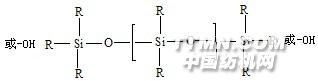 R一般是甲基,端羥基由一定的活性。如果部分甲基用氫原子代替,即為聚氫甲硅氧烷,用于整理,由較高耐洗性,起結(jié)構(gòu)可表示為:
