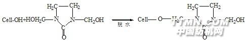 然后,脫出的甲醛再與纖維反應: