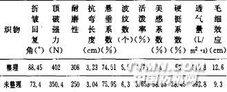 2.2 討論2.2.1 折皺回復(fù)角和頂破強(qiáng)力由表2可以看出,經(jīng)過整理的棉針織物折皺回復(fù)角比未經(jīng)整理的織物的折皺回復(fù)角有顯著提高,并且經(jīng)過整理的織物頂破強(qiáng)力也有所增加。這是由于整理后的棉織物上覆蓋了一層“網(wǎng)狀”羊毛蛋白薄膜,這層薄膜也使織物中的弱節(jié)得到了改善,再由于羊毛蛋白大分子的特殊結(jié)構(gòu)和大分子中的二硫鍵的作用使織物的彈性恢復(fù)能力增加,故折皺彈性和頂破強(qiáng)力都有所增加。2.2.2 耐磨性透氣性剛?cè)嵝詰掖剐杂杀?還可以看出,經(jīng)過整理的織物耐磨性有較大的改善,這是由于經(jīng)過整理的織物覆蓋了一層羊毛蛋白薄膜,由于該薄膜具有良好的變形和變形恢復(fù)能力,可以很好地抵抗外力的磨損,在一定時(shí)間內(nèi)保護(hù)了織物免遭摩擦外力的破壞,故經(jīng)過整理的織物耐磨性有較大的改善。由表2