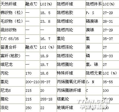 天然纖維祗能依靠后處理方法達到阻燃要求,合成纖維則不然,它可以采取與聚氯乙烯混紡,在紡絲液中添加阻燃劑等辦法制得阻燃纖維,特別是一些阻燃性能特好的碳素纖維,可用作消防員的特殊服裝,現(xiàn)將主要產(chǎn)品列表介紹如下;