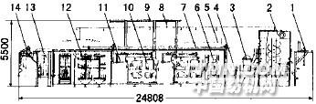 圖1 CJYAZL-180-FT1液氨整理聯(lián)合機(jī)1-送布架;2-烘燥機(jī);3-風(fēng)冷機(jī);4-立式