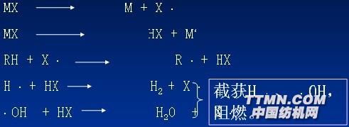 棉阻燃劑棉織物阻燃后,熱裂解溫度降低,裂解以炭化形式為主。 滌綸的阻燃機理:滌綸阻燃:裂解溫度和裂解產(chǎn)物不改變,火焰燃燒受到抑制。滌綸燃燒:自由基連鎖氧化反應,放出大量熱?;鹧娣磻?img alt ="" src="/ImagePath/tech/2011022109240613212(700).jpg" />滌綸阻燃劑