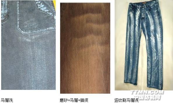 服裝水洗行業(yè),把牛仔服的一種新的水洗風(fēng)格親切地叫作"馬騮洗"(猴仔),其特色是;局部褪色,邊緣不清.加工方法可以用噴砂,噴霧,帶有褪色液的噴砂;也可以用手工操作,隨意繪制圖案.褪色液也叫"馬騮洗水",用高錳酸鉀水溶液就可以.