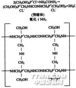 二、阻燃原理含磷化合物使纖維素纖維在熱介過程中產(chǎn)生脫水反應(yīng)。含磷阻燃劑在纖維熱解溫度范圍內(nèi)首先分解成不易揮發(fā)的磷酸或多磷酸酐與纖維素的羥基(—OH)發(fā)生脫水反應(yīng),使纖維炭化。浸軋過Proban阻燃劑的織物在氨熏過程中,由于在纖維素的內(nèi)部形成了二氯化磷/氮的高度交聯(lián)聚合物、產(chǎn)生P—N協(xié)同效應(yīng)。P—N鍵性能(極性)高于P—O鍵,使磷化合物與—OH反應(yīng)性能加強(qiáng),所以產(chǎn)生了高效的耐久阻燃性能。具體反應(yīng)如下:.jpg)