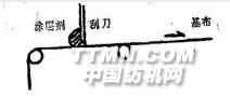 二、涂層劑的施加方法 我廠引進(jìn)的涂層機(jī)機(jī)頭是浮動(dòng)刮刀式,這種浮動(dòng)刮刀式涂層的工藝加工方法,織物是在有張力的狀態(tài)下,從兩個(gè)被動(dòng)導(dǎo)布軸上通過,是靠它本身張力緊貼在刮刀上的。