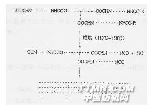 熱反應(yīng)型水溶性聚氨酯是20世紀70年代初,由日本第一工業(yè)制藥公司及德國Bayer公司經(jīng)過了10多年的研發(fā)而獲得成功的一系列用于紡織品后整理工藝中的助。因該系列產(chǎn)品不含甲醛,不APEO,不含溶劑,自上世紀80年代末投入市場后,已在歐美、日本等西方紡織品加工中廣泛應(yīng)用。熱應(yīng)型水溶性聚氨酯的主要用途為羊毛、絲綢織物的防皺、防縮加工,棉、麻織物的防皺、防縮,尺寸穩(wěn)定,力加工,滌綸等合成纖維的持久吸水抗靜電整理,與各種助劑并用使處理后織物的性能具有持久性(耐性)。熱反應(yīng)型水溶性聚氨酯能使織物有增厚感、豐滿度、彈性好、具有一定的垂懸度,適合于形狀穩(wěn)定、機可洗、免燙等功能性服裝面料的加工。廣東德美化工股份有限公司自去年開始正式生產(chǎn)熱反應(yīng)型水性聚氨酯以來,已受到不少國內(nèi)印染及毛紡廠家的好評,為客戶提高產(chǎn)品附加值以及解決長期困擾紡行業(yè)的質(zhì)量問題提供了有效的武器。本文重點就熱反應(yīng)型水溶性聚氨酯的原理、性能及應(yīng)用領(lǐng)域進行研究。 1、熱反應(yīng)型水溶性聚氨酯的工作原理1.1 原理 在反應(yīng)活性很高的聚氨酯活性基團(異氰酸酯)上接上保護基,然后滲透到纖維內(nèi)部,在130—150。c的焙烘條件下脫去保護基,使聚氨酯與纖維上的氨基、羥基等活性基團反應(yīng),或與并用的氨基硅油等并用助劑反應(yīng),或聚氨酯本身發(fā)生交聯(lián)反應(yīng),從而在纖維上形成網(wǎng)狀立體結(jié)構(gòu)的高分子膜,可持久性地賦予纖維各種后整理功能。1.2熱反應(yīng)型水溶性聚氨酯的反應(yīng)示意圖: