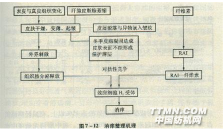 關(guān)于皮膚發(fā)癢的成因縱觀各國有關(guān)文獻(xiàn),還缺乏滿意的解釋。雖然醫(yī)學(xué)家已經(jīng)在皮膚上找到了觸覺神經(jīng)、痛覺神經(jīng)、溫覺神經(jīng),但據(jù)說迄今為止尚未發(fā)現(xiàn)癢覺神經(jīng)。所以有人認(rèn)為癢覺是痛覺的前驅(qū),即當(dāng)外界因素刺激了痛覺神經(jīng),但其強(qiáng)度還不足以達(dá)到產(chǎn)生痛覺,此時(shí)肌體就產(chǎn)生癢感。這些論述并沒有完整解釋發(fā)癢的直接原因。我國的中醫(yī)認(rèn)為老年人皮膚發(fā)癢屬“血虛”,對(duì)策是養(yǎng)血。 在眾多的發(fā)癢解釋中很難為開發(fā)消癢紡織品找到依據(jù)。我們更傾向于近代組織胺致癢的理論。這種理論認(rèn)為人體有一種代謝產(chǎn)物叫組織胺,主要分布在肥大的細(xì)胞顆粒中,以無活性的結(jié)合狀態(tài)存在。在人體皮膚的真皮層中可以找到組織胺,每當(dāng)皮膚受到物理化學(xué)性刺激就能將它釋放出來。組織胺與效應(yīng)細(xì)胞作用后就使皮膚產(chǎn)生癢感。 消癢紡織品的消癢原理是生物的競爭性對(duì)抗,即選擇一種在結(jié)構(gòu)上近似組織胺,而活性又比組織胺較強(qiáng)的物質(zhì),將它連接在纖維上。這樣兩者可以發(fā)生競爭性對(duì)抗,即兩者爭奪效應(yīng)細(xì)胞上的H1受體,如此導(dǎo)致組織胺不能與效應(yīng)細(xì)胞上的H1受體結(jié)合,這樣就有助于緩解或消除由于內(nèi)源性組織胺釋放所引起的皮膚過敏癥狀一一發(fā)癢。 這種物質(zhì)大都具有組織胺的乙基胺的結(jié)構(gòu),其結(jié)構(gòu)式如下:
