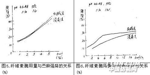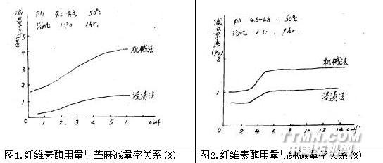 5.2.纖維素酶對棉、苧麻減量率不同,苧麻對纖維素酶較敏感,減量率較高。
