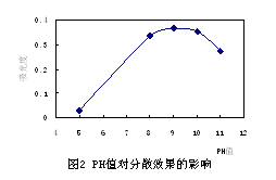 分散性越好,但PH值過高,吸光度呈下降趨勢。