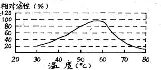 圖2.酶洗劑1538的活性——溫度曲線圖
