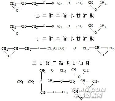 無甲醛類樹脂-環(huán)氧樹脂 也屬于熱固性樹脂,是以環(huán)氧基聚合,再將環(huán)氧基與羥基、羧基和氨基等反應(yīng)二硬化。作為無甲醛樹脂整理劑,由于它不用甲醛為原料,產(chǎn)品中不含甲醛,分子中也沒有亞氨基,所以沒有吸氯性和魚腥味二受到重視。其可分為兩大類:縮水甘油醚和過乙酸法環(huán)氧類。環(huán)氧化合物具有高度張力的三元環(huán),其鍵角扭曲、C-O鍵角極易開環(huán),表現(xiàn)出極大的活潑性,易與纖維中由活潑氫的-OH,-NH2等基團(tuán)反應(yīng)。生成的-C-C-鍵或-C-O-鍵比用N-羥甲基整理劑生成的-N-C-鍵有更好的抗?jié)癜櫺?。縮水甘油醚類樹脂,是由醇類或酚類化合物與環(huán)氧丙烷縮合而成的樹脂。所用的醇類有甘油,乙二醇,聚乙二醇等,所用的酚類主要為雙酚A。過乙酸法環(huán)氧樹脂,是由烯烴用過乙酸氧化而成的樹脂。所用的烯烴有丁二烯,環(huán)戊二烯,乙烯基環(huán)己烯,二乙烯基苯,二丙烯醚等。
