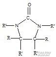式中:R為H,OH或OCH3;R’為H,C6H5或CH3,R’’為H,CH3,—CH2OH,—CH2OCH3,其中羥基和氮原子直接結(jié)合時,使其具有足夠的活性,在適當(dāng)?shù)臏囟群痛呋瘎┫?,可與纖維素反應(yīng)。二羥基乙烯脲(DMEU),結(jié)構(gòu)式: