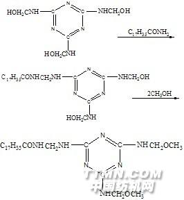 甲醚化羥基甲基三聚氰胺樹脂的耐洗滌性比相應(yīng)的未甲醚化的羥甲基三聚氰胺更好一些,在水中的溶解度和穩(wěn)定性都有所提高,對織物的強降和泛黃都有提高,缺點是手感較硬。為了改善手感,將甲醚化三羥甲基三聚氰胺用脂肪酰胺進一步改性。.jpg)