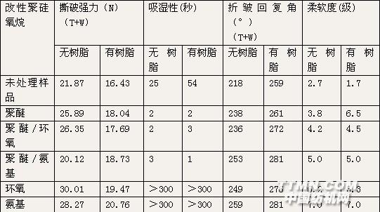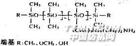 注:織物為50/50聚醋/棉微纖維混紡。1300、WT1650;羅納-普朗克公司的21637、21642;日華公司的Nikka Silicone AM;大日本油墨公司的Dicsilicone A-750。國產(chǎn)的品牌更多,舉不勝舉。其分子結(jié)構(gòu)式為: