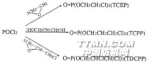 3.3 鹵代膦酸酯類阻燃劑這類阻燃劑的分子中既有磷,又有鹵素,它們之間存在協(xié)同增效作用。所以有些品種具有良好的阻燃作用,主要用于塑料添加劑,也可用于纖維阻燃整理。其中三(2,3—二溴丙基)膦酸酯(TDBPP,又名TRIS),因?yàn)榇蟀资蠹毙远拘栽囼?yàn)顯示口服LD50為50mg/kg,經(jīng)皮膚LD50為200mg/kg,為劇毒品,已禁用。含氯膦酸酯的阻燃劑品種有:三(B—氯乙基)膦酸酯(TCEP),三(2—氯丙基)膦酸酯(TCPP),三(2,3—二氯丙基)膦酸酯(TDCPP)。它們的合成方便,是以三氯氧化磷在催化劑存在下與環(huán)氧乙烷,1,3—丙二醇和環(huán)氧氯丙烷反應(yīng)制得,反應(yīng)如下: