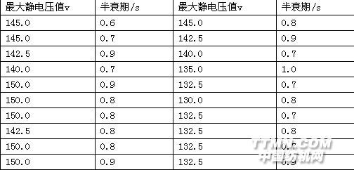 2·2 納米銀粒子對織物的抗靜電整理[4] 表2中,平均最大靜電壓值為140.9V,平均半衰期為0.8s。表2 納米銀粒子處理織物后的抗靜電測試結(jié)果