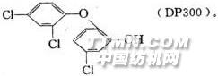 中紡大研制的CHA抗菌防臭整理劑是由抗菌劑、增效劑、乳化劑、交聯(lián)劑復(fù)合組成的。其抗菌劑主要成份為2,4,4’-三氯-2-羥基二苯醚(DP300),具有以下結(jié)構(gòu) 。