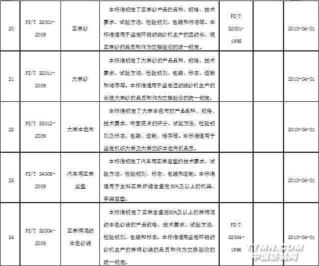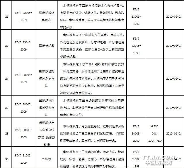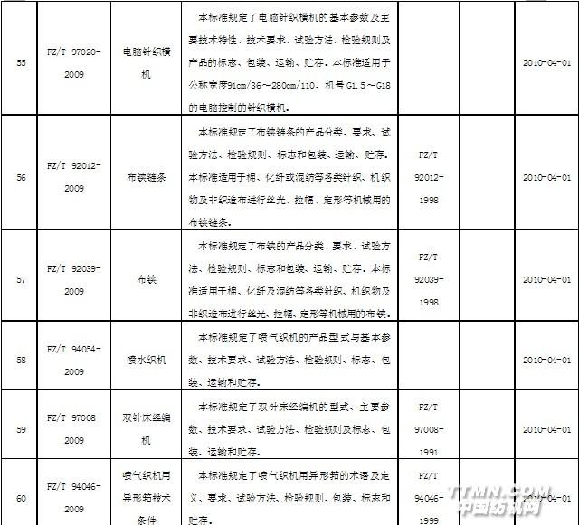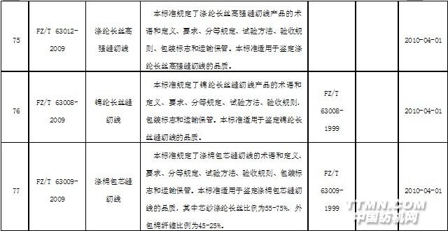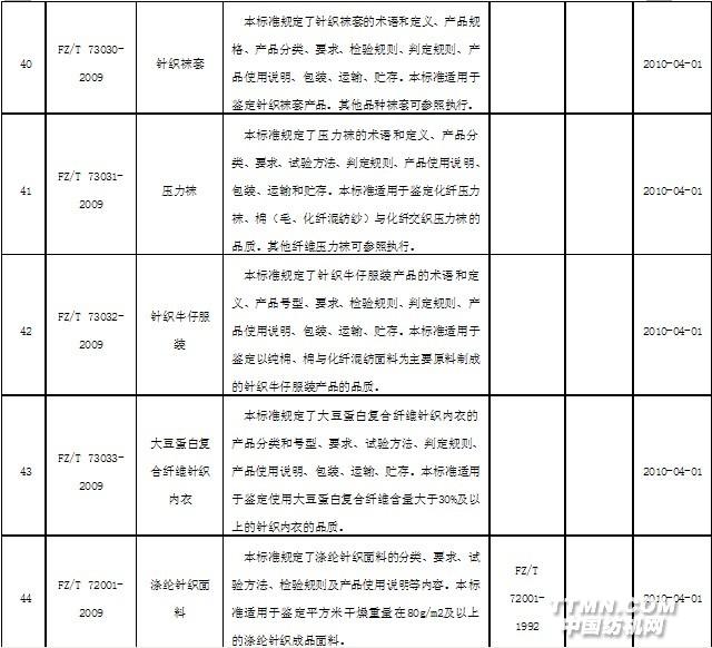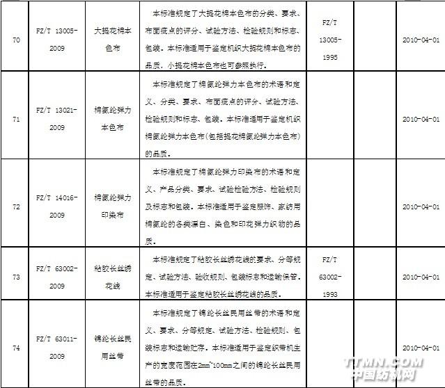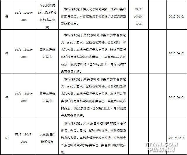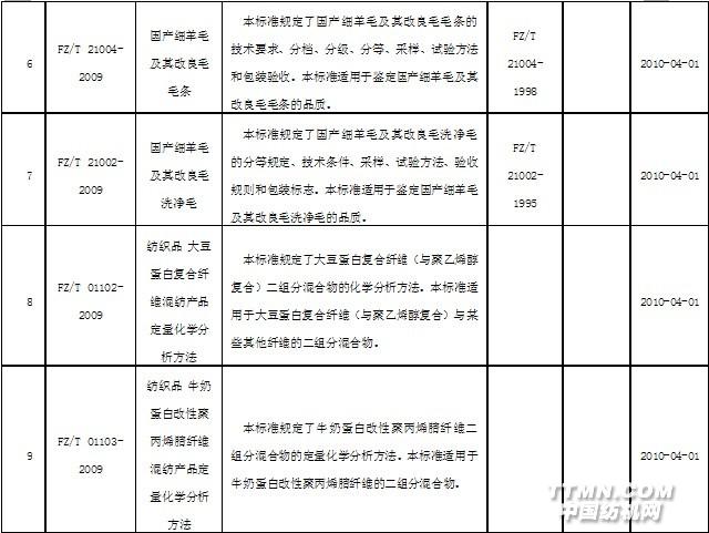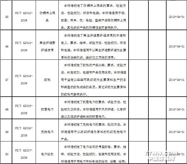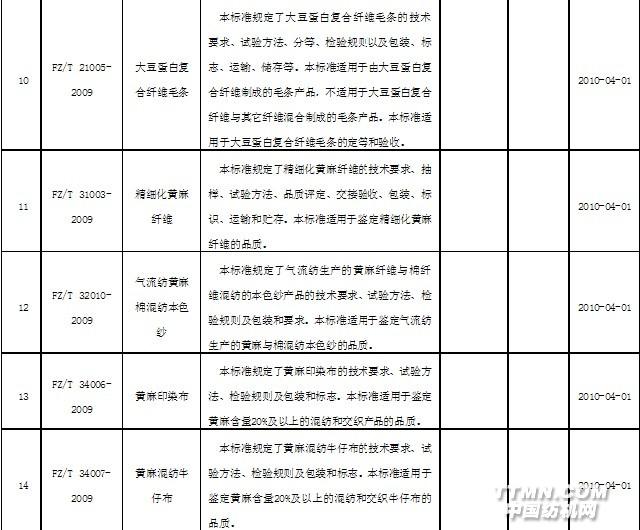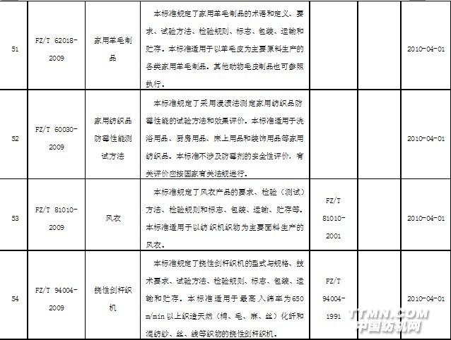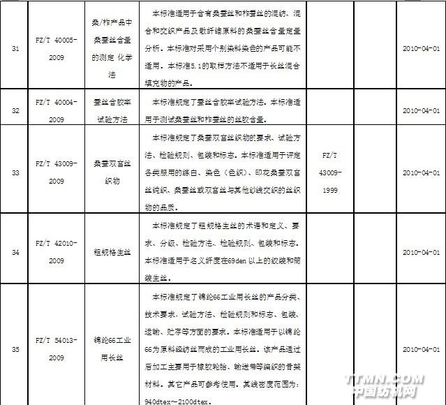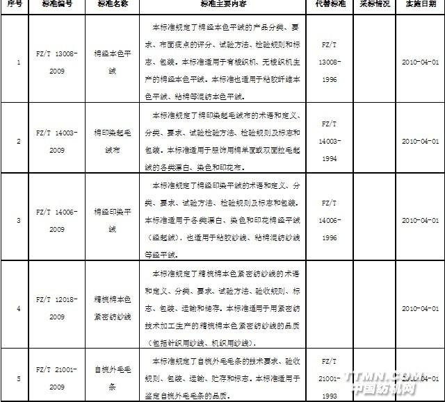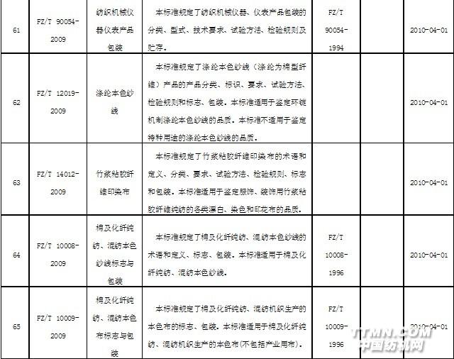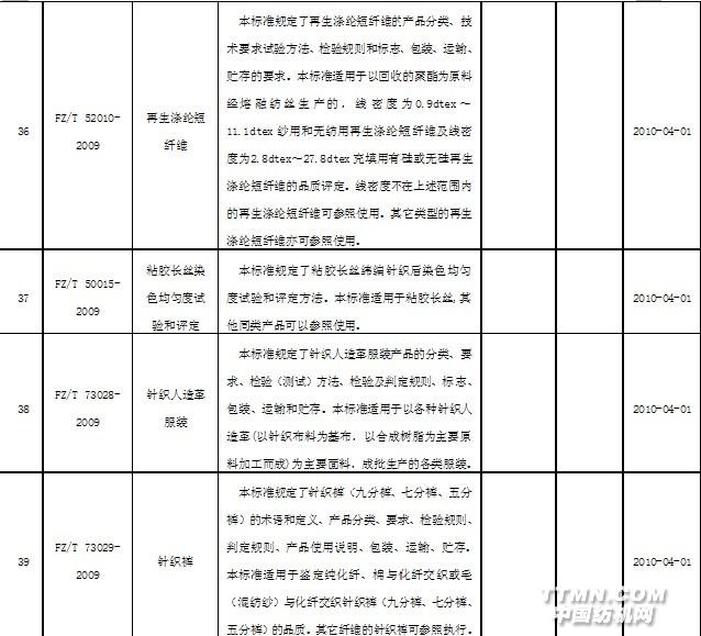 2010年4月實施的紡織行業(yè)標(biāo)準(zhǔn)