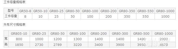 2、工作容量: (見規(guī)格表)