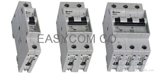 ----6. 斷路器均能滿足IEC898的標準,分斷能力最高可達10KA(如用于工業(yè)IEC947-2標準最高達25KA