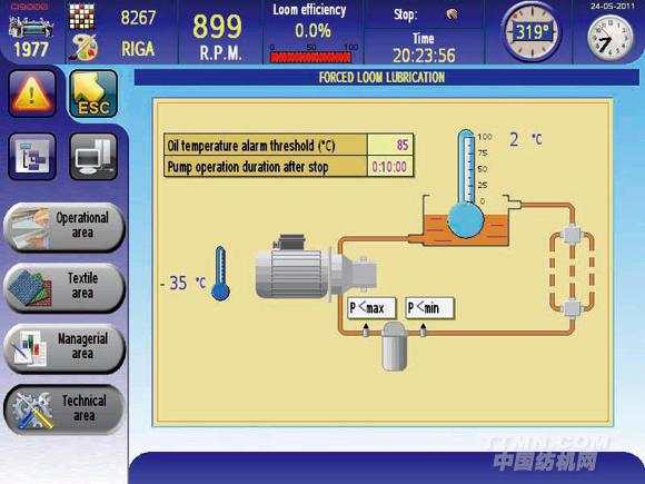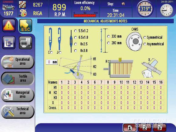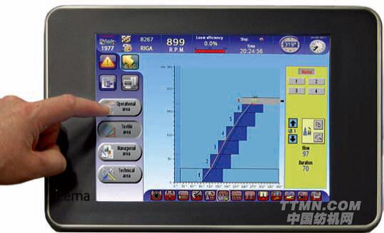 A9000噴氣織機(jī)應(yīng)用了最先進(jìn)的技術(shù),采用最新式的電子平臺(tái)——全彩觸摸屏,作為用戶操作界面。直觀的操作軟件方便操作者和技術(shù)人員進(jìn)行操作。生動(dòng)的圖標(biāo)輕松指引用戶進(jìn)入想要的界面,使操作者更容易上手。