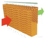 天順濕簾降溫系統(tǒng)的降溫過程是在其核心-“天順”紙墊內(nèi)完成的。在波紋狀的纖維紙表面有層薄薄的水膜,當(dāng)室外干熱空氣被風(fēng)機(jī)抽吸穿過紙墊時(shí),水膜上的水會(huì)吸收空氣中的熱量進(jìn)而蒸發(fā)成水蒸汽,這樣經(jīng)過處理后的涼爽濕潤的空氣就進(jìn)入室內(nèi)了。這自然的過程猶如風(fēng)吹過水面一樣。