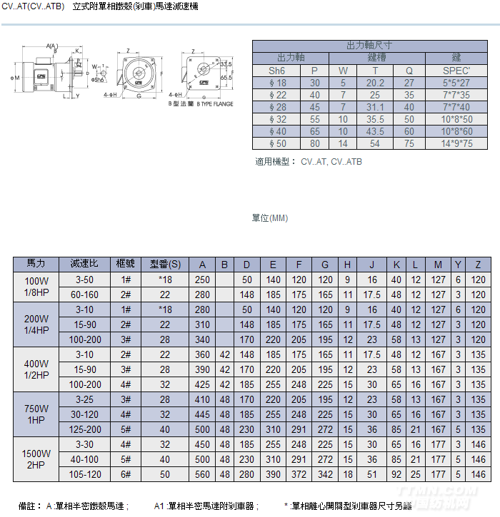選配附件:DC-90V剎車器、SYB手釋放剎車器、強制風扇、等