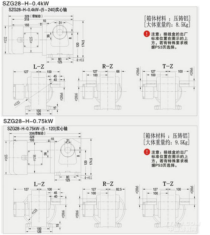 產(chǎn)品參數(shù):產(chǎn)品型號(hào): SZG-H 額定功率:25-2.2KW電壓:220V-380V轉(zhuǎn)速/極數(shù):null減速比:1:5-1:240安裝方式:null
