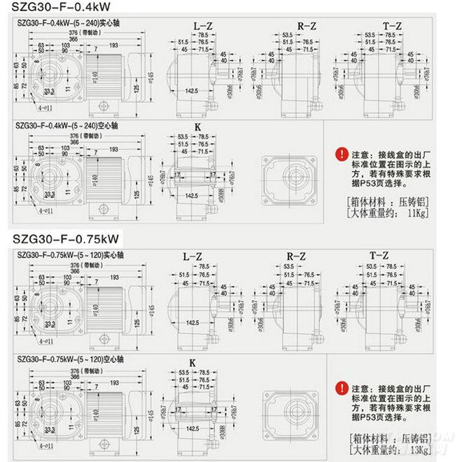 SZG-F直交軸中型可實現(xiàn)齒輪箱與電機的多種組合 我們不僅提供帶普通三相電機的山藤SEND產品,還可以提供帶單相電機、變頻電機,帶剎車,安裝編碼器等多種規(guī)格的山藤SEND產品,并且我們還推出了可與伺服電機配套的系列。