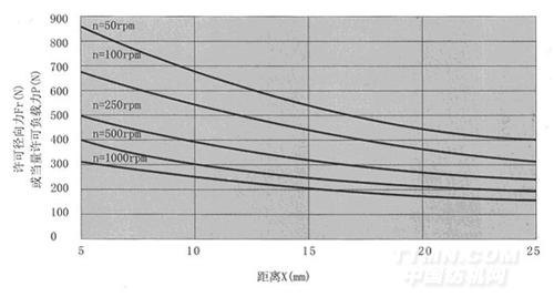 注:(1)上述(表2)表示軸向力Fa=0時的許可徑向力,(表3)表示徑向力Fr=0時的許可軸由力,當(dāng)即有徑向力又有軸向力時,(表2)表示當(dāng)量許可負載力P,這時可用公式P=0.56Fr+2Fa對實際徑向力和實際軸向力進行驗算。