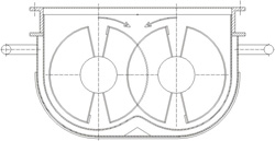 | 其外殼采用底部為圓形,上部為矩形,殼內(nèi)排列有2-4根空心攪拌軸,軸與殼體間有密封端蓋。上蓋體 |
