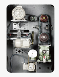 此傳動(dòng)箱包含所有的傳動(dòng)電機(jī),減速箱和傳動(dòng)部件。結(jié)構(gòu)緊湊,經(jīng)久耐用,主要部件為西門子電機(jī),進(jìn)口傳動(dòng)皮帶和進(jìn)口軸承。
