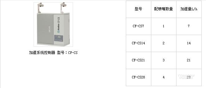 ■ 緊湊型加濕系統(tǒng)分為四種型號,每套系統(tǒng)包括一個CF-CS控制單元和1..6 個CF-1噴嘴。