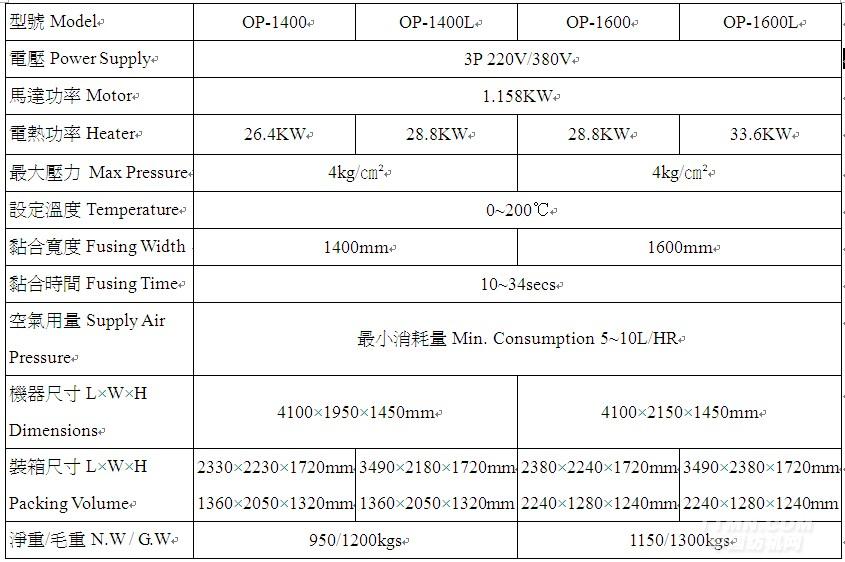 OP-1400/1400L/1600/1600L連續(xù)式黏合機