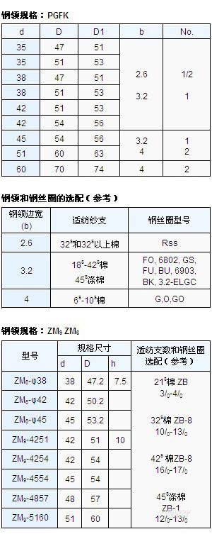 3、鋼領(lǐng)與鋼絲圈的選配參考