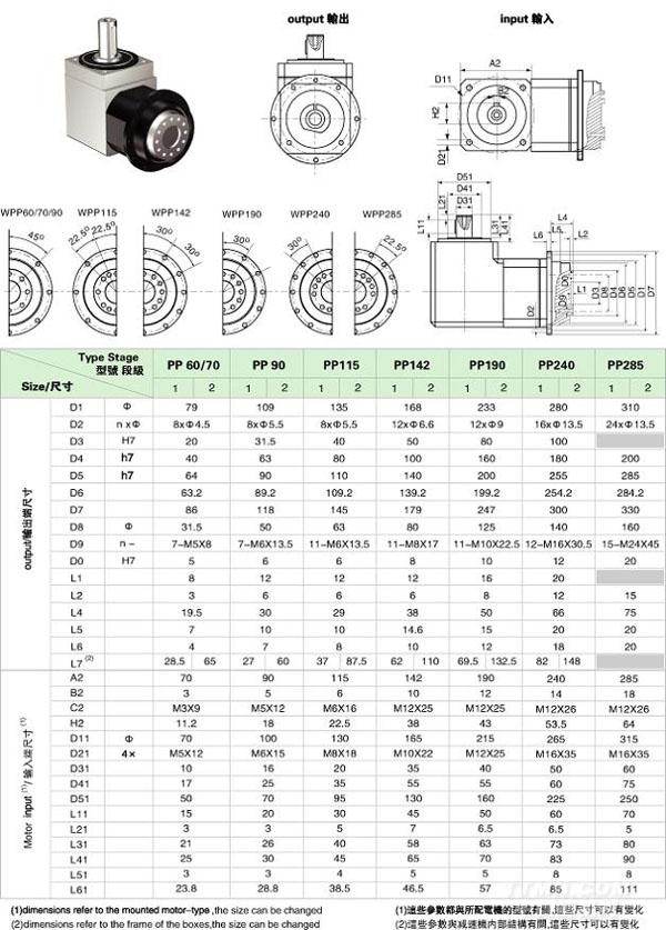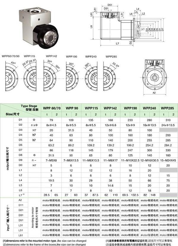 PP/WPP 系列精密行星減速機(jī)技術(shù)參數(shù)