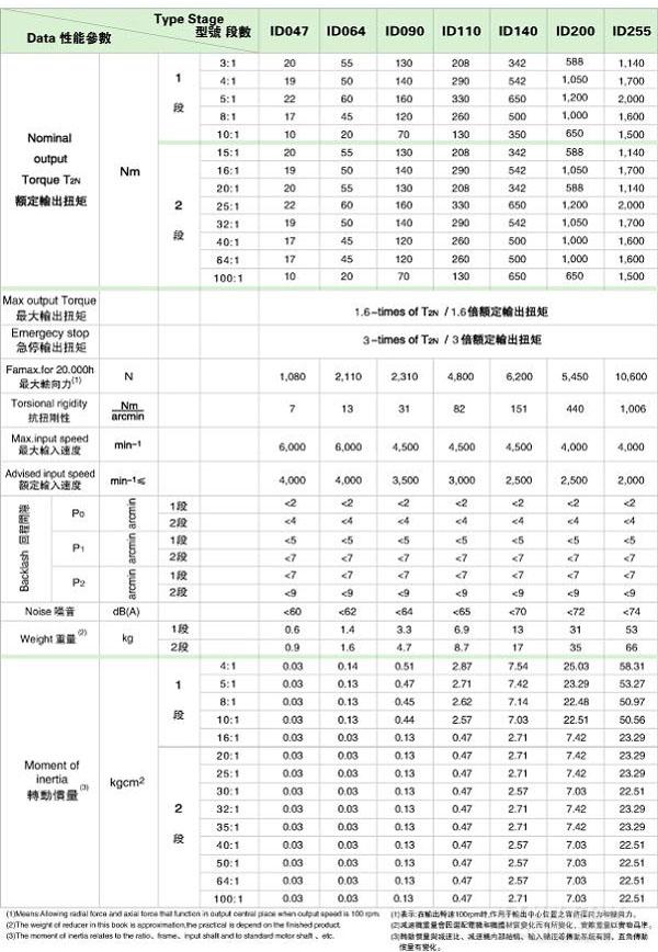 ID 系列精密行星減速機(jī)技術(shù)參數(shù)