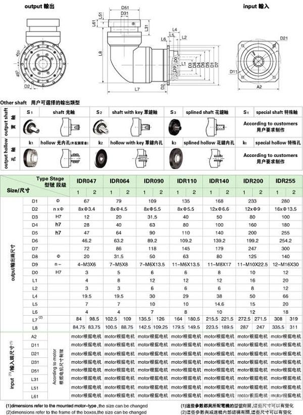 IDR 系列精密行星減速機(jī)技術(shù)參數(shù)