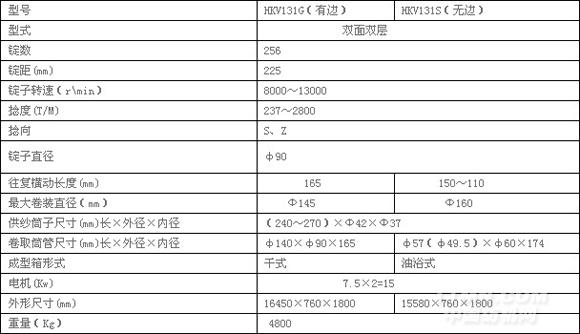 HKV131G(S)型倍捻機(jī)是一種適用以化纖、混紡等為原料的加捻設(shè)備,實(shí)現(xiàn)一轉(zhuǎn)兩捻,效率比傳統(tǒng)捻線機(jī)成倍提高,卷裝容量增大,萬米無接頭,加捻質(zhì)量大幅度提高。該機(jī)具有性能價(jià)格比優(yōu)越、錠速均勻、噪音低等優(yōu)點(diǎn)。其中卷取成型方式有無邊卷繞(型號為HKV131S型)與有邊卷繞(型號為HKV131G型)兩種機(jī)型可供選擇。其最終產(chǎn)品廣泛應(yīng)用于造織領(lǐng)域.