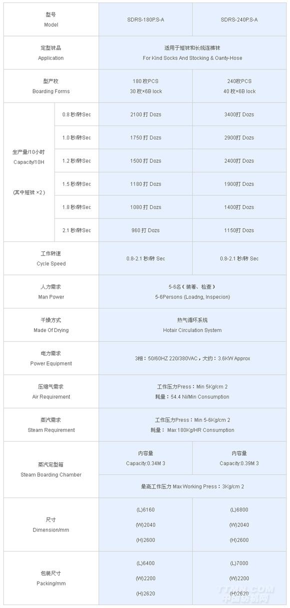 該類產(chǎn)品包括:SDRS-180P.S-A、SDRS-240P.S-A,適用于短襪和長(zhǎng)統(tǒng)連褲襪。