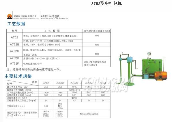 您所在的位置:紡機(jī)網(wǎng) >> 邯鄲紡織機(jī)械有限公司(邯鄲宏大化纖機(jī)械有限公司) >> A752型中打包機(jī)