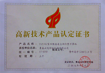 FA318A高新技術(shù)產(chǎn)品認(rèn)定證書多種產(chǎn)品獲得此榮譽